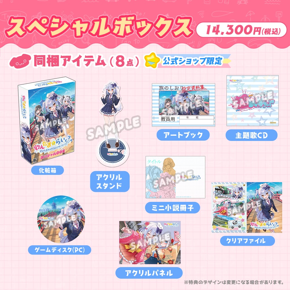 VTuber「犬山たまき」主演・主役、VTuber「神楽めあ」と漫画家「佃煮のりお」が出演するノベルゲーム『わんたま☆らいふ 〜犬山たまきの修学旅行サバイバル〜』スペシャルボックスです。